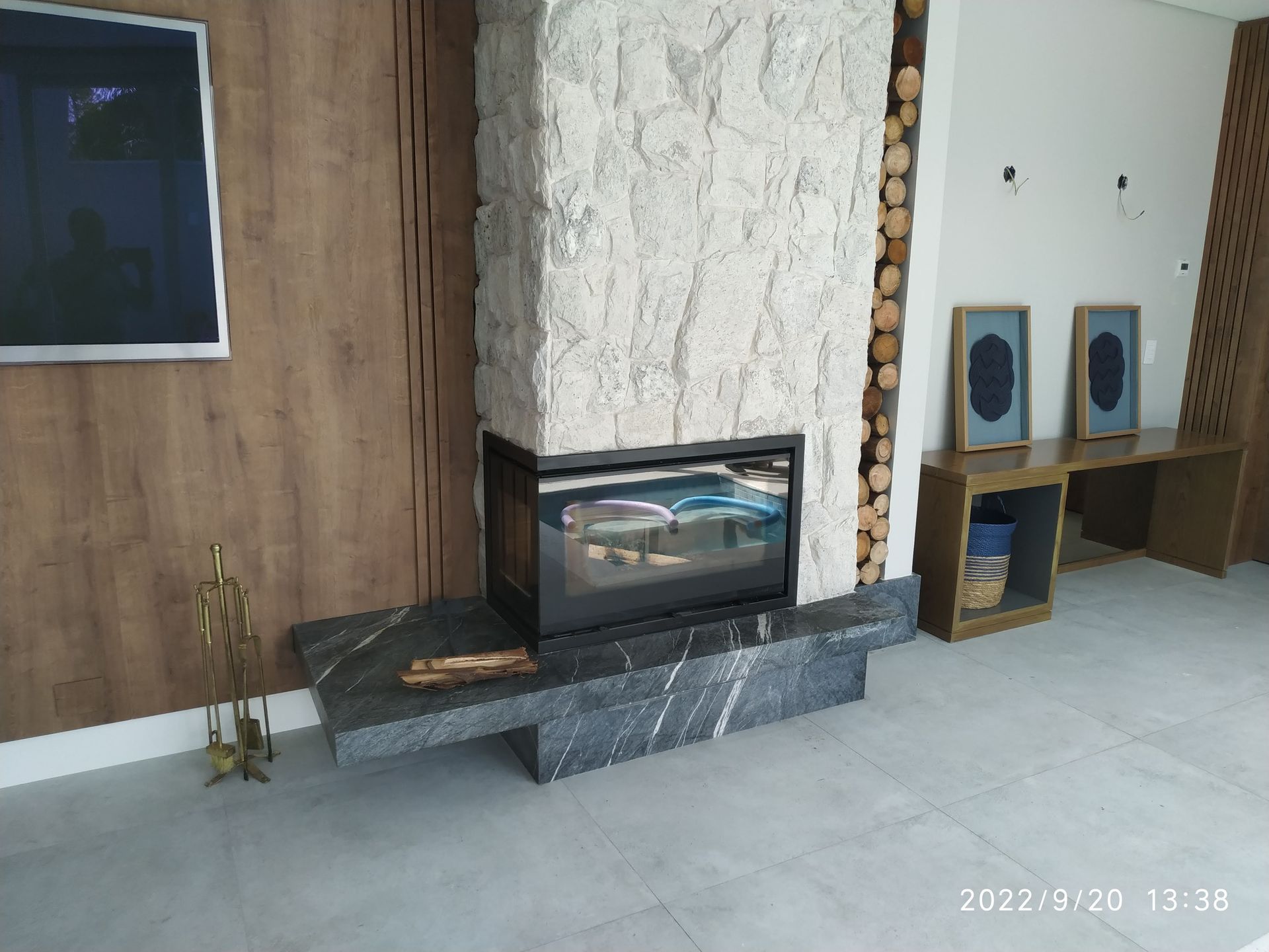 LAREIRA MOVEL FEITA EM MAFMORE PRETO ESCOVADO